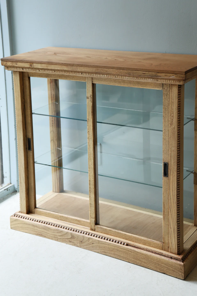 また、当時の高級店や呉服屋で使われていたガラスケースには、ケヤキやナラといった良質な広葉樹が使われ、引き出しの細工や脚部に凝った装飾が施されています。そのつくりの丁寧さと素材の確かさが、今なお高い評価を受ける理由です。現代では、コレクションを収納したり、カフェや雑貨店のディスプレイ用としても人気が高く、実用性と美観を兼ね備えたアンティーク家具の代表格となっています。